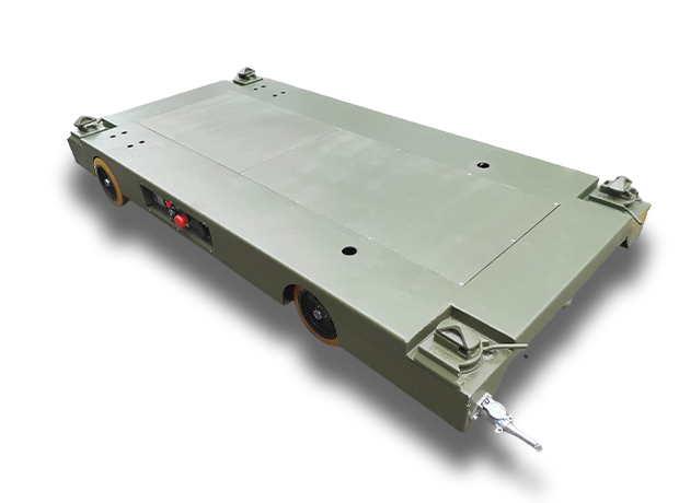 本車設計同時兼備自走牽引兩種功能,非自動行走時可牽引拖行;操作簡單實用、性能穩定,板面四角設計燕尾式集裝箱角件,與上裝對接可實現快速裝卸,動力源采用電池組配充電器,動力電機采用轉向采用液壓推桿做轉向動力,牽引自走轉換系統,配電磁離合器,牽引拖行時電機與車橋分離減,有效減少牽引阻力及電機磨損。按鈕遙控器;功能包括啟動急停、前進與后退、左右轉向。